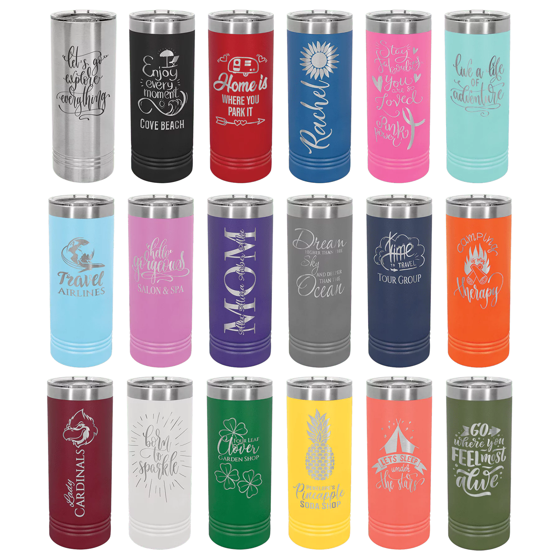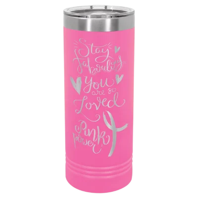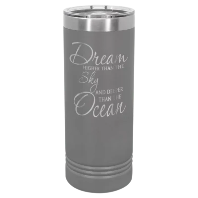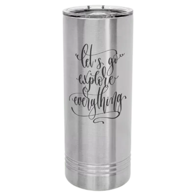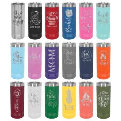 22 oz Skinny Tumbler! This tumbler is perfect for an easy grasp with smaller hands. Available in Stainless Steel and in 16 vibrant colors. The included slider lid helps to prevent spills.
