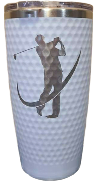 If you’re looking for a new and unique award for a golf tournament or a great personalized gift for the golfers in your life, this Polar Camel 20oz tumbler is perfect! The dimpled coating resembles a golf ball and it can be personalized with the graphics of your choice! The tumbler has the heat/cold retention properties you expect from Polar Camel drinkware and comes with a slider lid to prevent spills. Tapered at the bottom it fits most cup holders. Keep your drink cold for over 24 hours! Hot fluids up to 8 hours Not recommended for dishwashers, hand wash only . Personalise your tumbler FREE with Laser Engraving!
